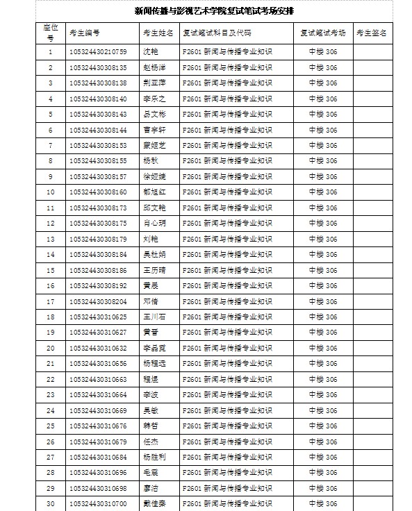新闻传播与影视艺术学院2014年硕士研究生复试名单