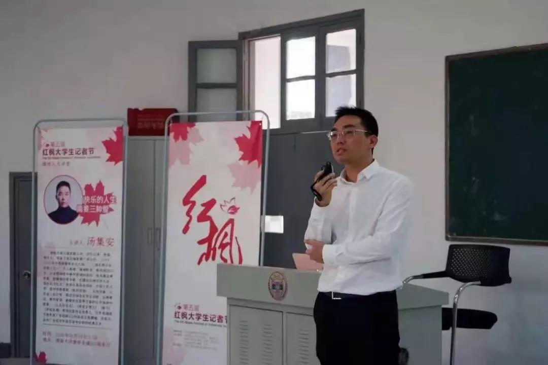 。作为第五届红枫大学生记者节媒体人大讲堂第二期的主讲嘉宾,汤集安进行了题为《快乐的人生需要三种“爱”》的演讲。