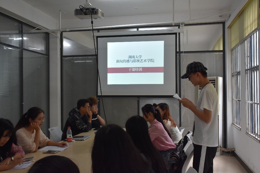 新闻传播与影视艺术学院在图书馆研讨空间进行了本学年第三次干部培训,主要有学生会各部门人员、18级年级会成员以及18级各班班长和团支书参加。此次培训总结了本学年学生干部在工作中遇到的问题,并进行了分析和解决。