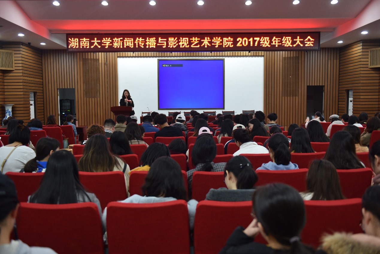 3月31日下午6:30,新影院2017级年级大会在北楼217会议室召开。新闻传播与影视艺术学院党委副书记程华、17级辅导员丁杨、杨湘雨以及2017级全体同学参与此次会议。