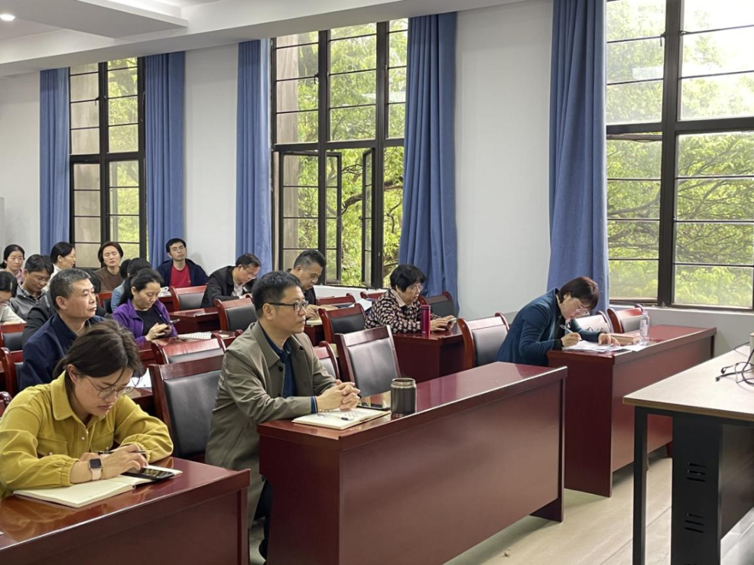 在北楼312教室召开党史学习教育员大会暨第一次专题党课。大会由学院党委副书记李洪玉主持,党委书记胡建国作动员并做第一次专题党课,学院领导班子、学院全体教职工党员参加了此次大会。