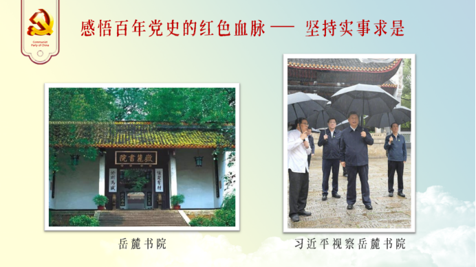 2020年9月17日,习近平总书记来到岳麓书院讲堂前,望着檐上的“实事求是”匾额,久久凝思。“毛主席当年就是在这里熏陶出来的,实事求是就来源于这里。”