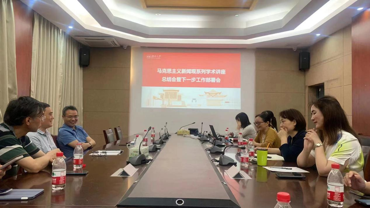 马克思主义新闻观系列学术讲座和征文活动总结暨下一步工作部署会在学院307会议室举行。校党委常委、宣传部部长、学院院长唐珍名,党委书记杨永锋,学院特聘教授、岳麓学者、大学生做爱