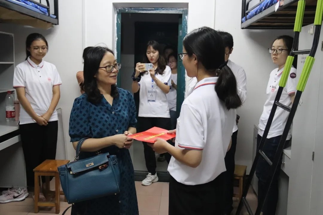 首先,胡书记一行前往学生寝室,为学院中家庭困难的学生送上了学院准备的慰问金,激励她们要好好学习,回报社会,实现父母的期望。