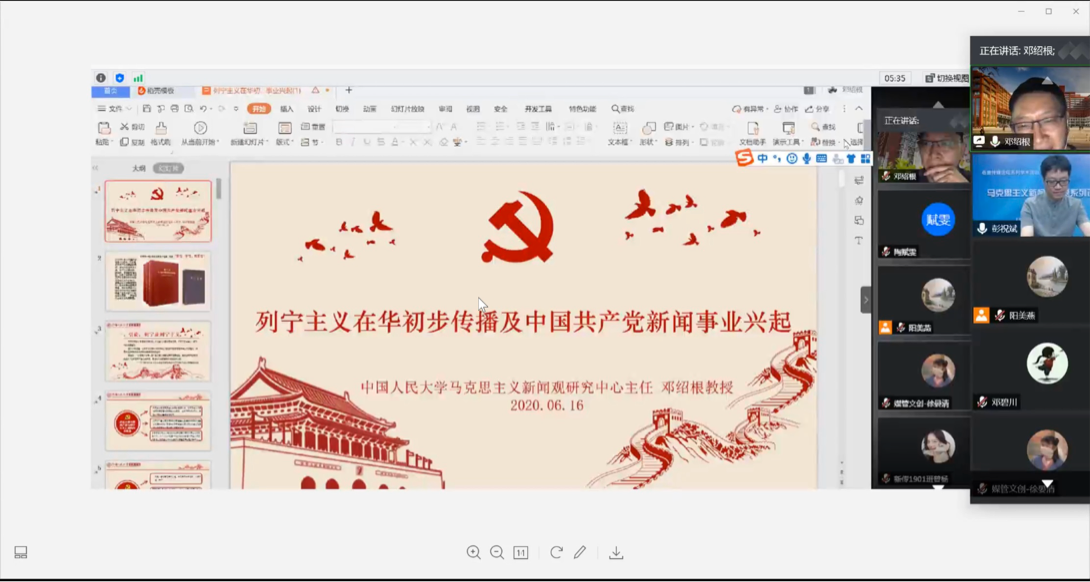 马克思主义新闻观研究中心,于“云端”腾讯会议室举办了一场别开生面的学术讲座。此次讲座以“列宁主义在华初步传播与中国共产党新闻事业的兴起”为题,由中国人民大学新闻学院教授、中国新闻史学会联席秘书长、中国人民大学马克思主义新闻观研究中心主任邓绍根教授担任主讲,大学生做爱