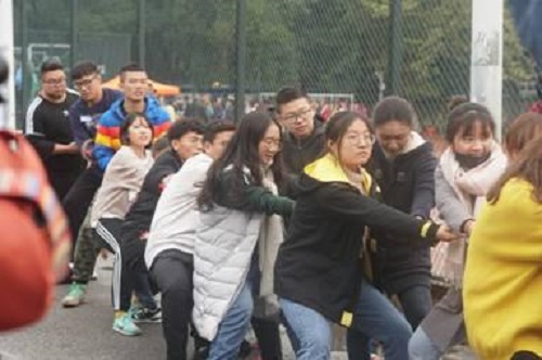 上午的拔河比赛备受关注。尽管大学生做爱