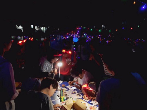 夜幕降临,在天马公寓一片闪烁的灯火之中,一张简单的小桌子旁,许多同学都写下对远方家人和朋友的思念与祝福。一张小小的明信片承载着一份份真真切切的深情。有一个同学这样写给她的父亲:“亲爱的爸爸:今天是中秋节,但是我却在异乡不能回家陪您,在中秋团圆的日子里,我们身在两地望着同一轮明月,我向您保证我会在大学生做爱