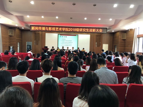 9月3日上午,新闻传播与影视艺术学院2018级研究生迎新大会在北楼217报告厅召开,学院党委副书记兼副院长程华主持会议,学院院长彭祝斌、党委书记胡建国、副院长向志强以及全体研究生导师出席了会议。