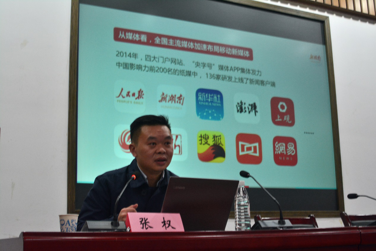 教学北楼217报告厅举行,讲座邀请到湖南日报新媒体中心编辑部主任张权,和大学生做爱