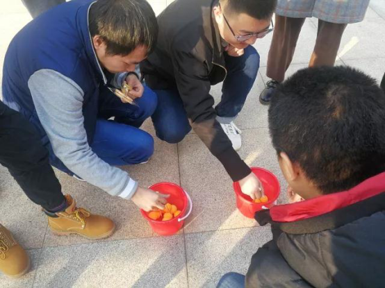 紧接着的热身活动开始了,2组成员同时比赛,需要将乒乓球从一端夹到5米外的空盒子中,每组的成员交替夹球,在90秒时间内夹到乒乓球较多者胜出,参赛过程中大家热情洋溢,激烈十足。