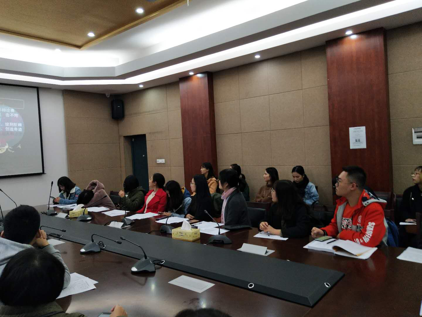 程华书记在各班答辩结束说到:“各班要积极搭建与老师沟通交流的平台,加大宣传力度,更好地完善班级建设,无论是专业学习还是社会实践都努力做到兼优并进。”同时,程华书记还提到优秀班集体新闻1301的创建情况。她指出,班集体建设并不能只依靠班长,而要动员全班同学积极参与,做到真正意义上的凝聚团结。未来的班级创建要更加有实践性、专业性、目的性、规划性和创新性。会议最后,程华书记说:“在班级创建的过程中,每个人都会有所收获、有所成长,期待大家明年更加精彩的表现!”
