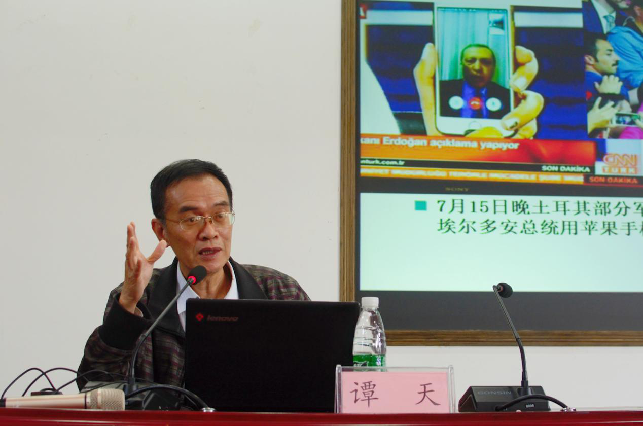 谭天教授细数我国电视节目发展史,向同学们介绍到:随着社会不断发展,进入互联网时代以来,电视节目的空间属性日益凸显,电视节目的内涵和外延正在变得丰富多彩。互联网赋予用户更多的权利,用户即是信息的接收者和传播者,也是生产者和消费者。生产空间多元化,传播空间社交化,运营空间平台化,互联网思维赋予我们更多的想象空间。包括春晚“摇一摇”活动,“春晚搭台,腾讯唱戏”;韩国电子商店进驻地铁站,电视、电商合二为一等,都是具体表现。