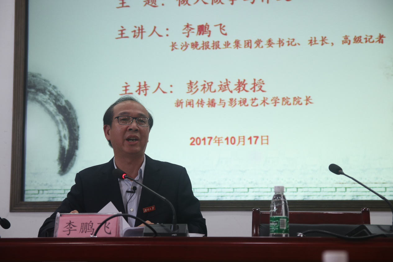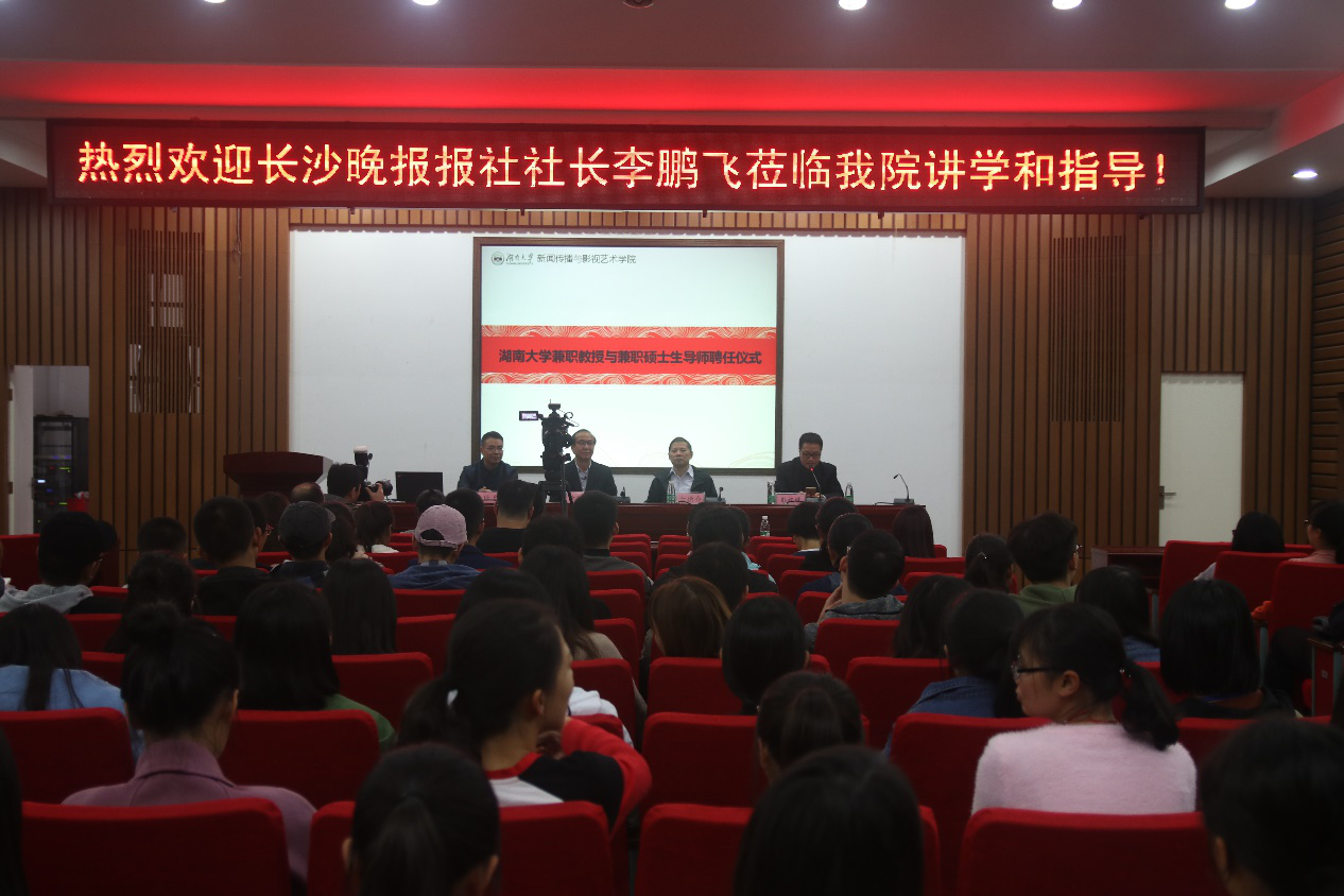 北楼217报告厅举行,长沙晚报社社长李鹏飞受聘为大学生做爱