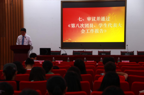 第七届学生会副主席兼办公室主任庄彩云、分团委副书记史晨露、学生会副主席高琳轩分别作《筹备工作报告》、《代表资格审查报告》、《候选人资格审查报告》,学生会副主席梁紫莹宣读《大会选举办法》。学生会主席刘聪作了题为“求真务实,开拓创新,奋力谱写学院团学工作新篇章”的《第八次团员、学生代表大会工作报告》,提请大会通过,大会审议并通过了以上各项报告。