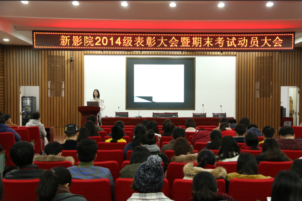 1月7号中午12时,新影院14级学生齐集北楼217,召开2014级表彰大会暨考试动员大会。此次年级大会对上一学年获得奖项的同学进行表彰并动员同学们努力复习期末考试,积极备考、诚信应考。