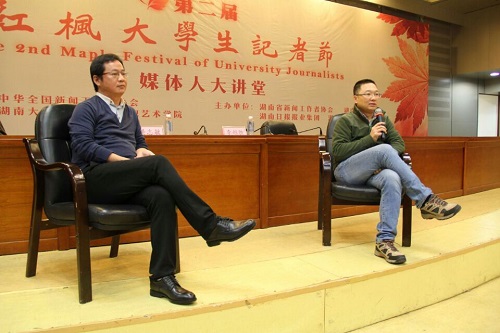 逸夫楼报告厅举行。本次活动邀请到财新传媒首席技术官、网易第6号员工黄志敏先生和湖南卫视《湖南新闻联播》制片人、电视评论专栏《胡湘平》主笔李越胜先生。