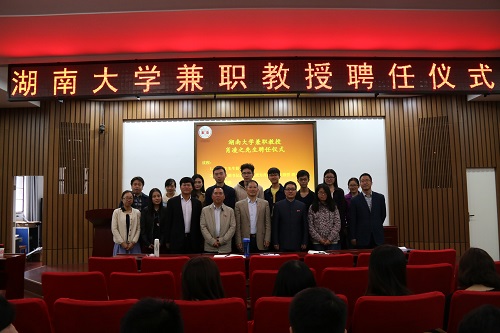 兼职教授和专业硕士研究生校外导师。校党委副书记唐亚阳教授为肖凌之颁发聘书、佩戴校徽,院长彭祝斌教授主持聘任仪式。