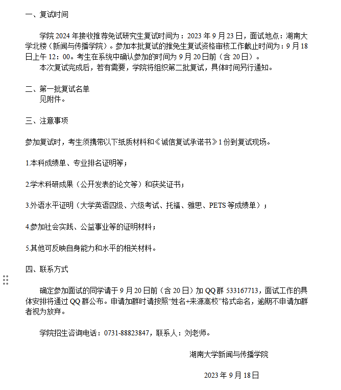 大学生做爱 2024年接收推荐免试研究生复试公告