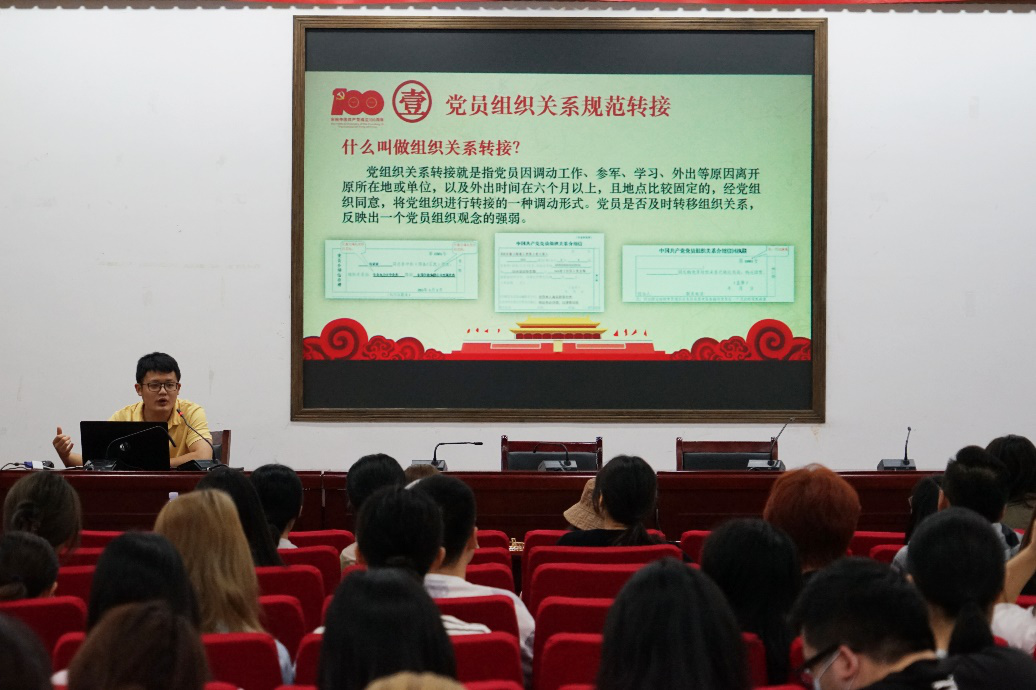 接着,黄坤林老师讲解了毕业生党员组织关系转接去向,包括已经落实工作单位且单位建有党组织、单位没有党组织、未落实就业或出国的三类毕业生党员,详细说明了每一类的对应去向。随后,黄坤林老师从组织关系转往湖南省内和省外两方面讲解了毕业生党员组织关系转接类型,叮嘱大家填写好《毕业生党员信息登记表》以及问清楚接收党组织的具体名称。最后,黄坤林老师再次讲解了毕业生党员组织关系转接流程,回答了部分毕业生党员存在的疑问。