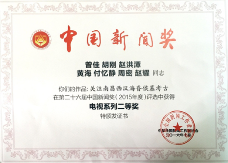 2015年11月4日,江西正式对外发布:南昌西汉海昏侯墓是目前我国发现的面积最大、保存最好、内涵最丰富的汉代列侯等级墓葬。根据她记录的考古发掘的历程,《江西新闻联播》连续推出120多条报道,其中一组系列报道《关注南昌西汉海昏侯墓考古》,获得了第二十六届中国新闻奖电视系列二等奖。