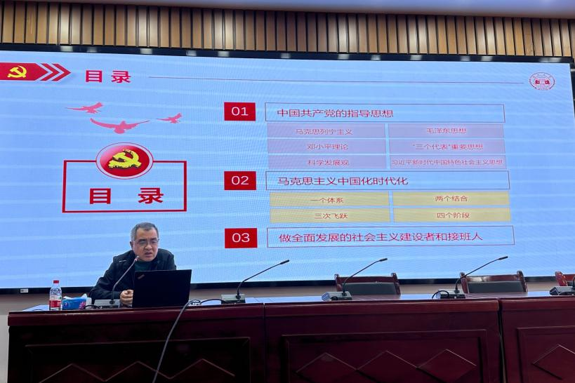 活动第二阶段,张坤书记为同学们讲授了主题为“党的指导思想”的第一次党课。张坤书记深入浅出地介绍了从马列主义到习近平新时代中国特色社会主义思想等党的重要指导思想,讲解了马克思主义中国化时代化“一个体系”“两个结合”“三次飞跃”“四个阶段”的主要内容和相互关系,提出了做全面发展的社会主义建设者和接班人的具体要求,并勉励同学们作为新时代青年要牢记总书记的嘱托,担负起时代重任。